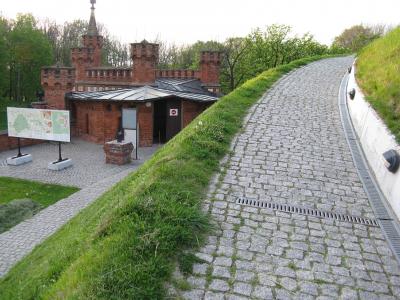 トラム駅 Salwator(終点)で下車し、そのまま右側を進行方向に歩いていくと、途中、看板のある坂道があります。