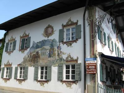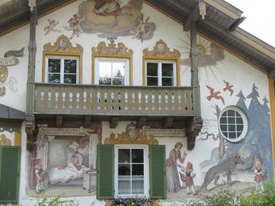 オーバーアマガウでは、家の壁に描かれたフレスコ画を 多く見ることができます。