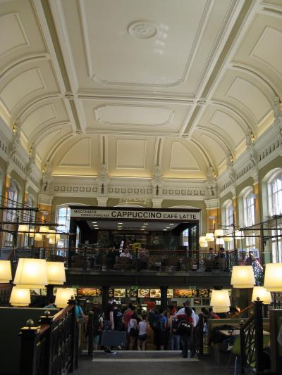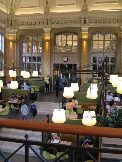 ブダペスト西駅の駅舎の一角にあり、中に入ると、開放感ある高い天井にアールヌーボーの白い壁。
