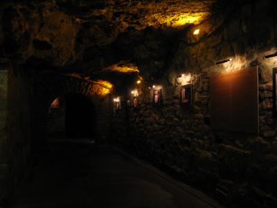 お墓のような石碑があったり、泉があったり、と暗い地下の中に まるでお化け屋敷のような仕掛けです。