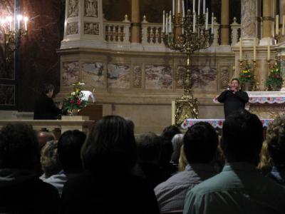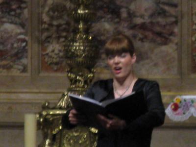 主祭壇前をステージに、オルガン、バイオリン、そしてソプラノの歌声と、交替で演じられます。