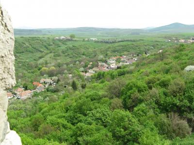廃墟のようなお城の中は 何もない石造りですが、眺望はとても良く、周囲の広大な緑地、そして眼下にホーロック村が小さく見えます。