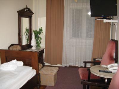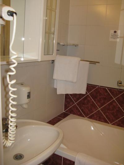 部屋(シングルルーム)はドナウ川側ではありませんでしたが、天井がとても高く、しかもバスルームが寝室と同じくらいの広さなので、とても開放感があります。
