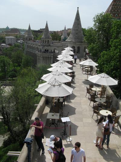 実は砦は、王宮の丘に通じる大きな階段を挟んで左右にあり、階段から向かって左側(聖イシュトヴァーンの銅像がある広場側)が一般的に言われている漁夫の砦(入場料要)、そして逆の右側にも同じ白亜の砦があり、こちらは入場料不要です。