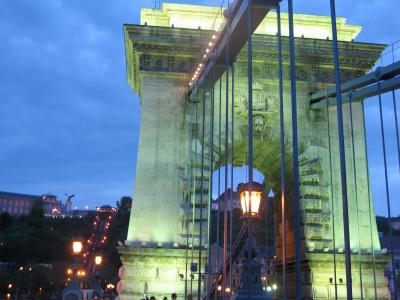 散歩がてら ペスト側から渡り、再び戻ってきましたが、橋越しに見えるブダ地区のケーブルカー乗り場や王宮、ペスト側の国会議事堂のライトアップは、うっとりするほどの演出です。