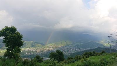ホテルの屋上から見えるポカラの町。今日はちょうどあの雲がめっちゃかかっ...