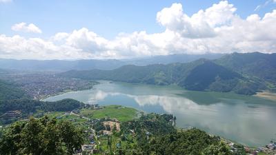 ホテルの屋上から見えるポカラの町。今日はちょうどあの雲がめっちゃかかっ...