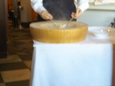 ドムトールン入口の前にあります。 目の前で、大きなチーズの中に熱々のパスタを入れ和えてくれます。 チーズ好きにはたまりません。 ボロネーぜもお肉がしっかりしてて美味しかった。 グリーンサラダは量多く、シェアしました。ドレッシングも美味しく満足しました。