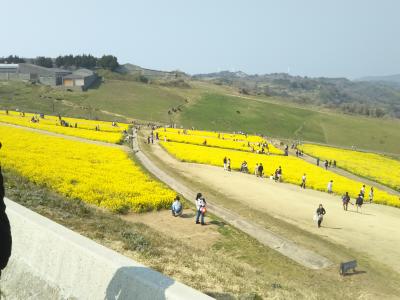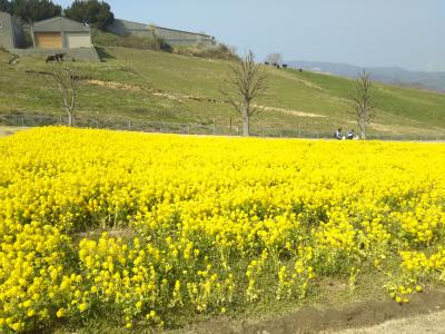 還暦の誕生日に長男が招待してくれました。 昨年の8月に来た時は、花が咲いてなかったのですが、今回は、桜は、まだチラホラ出したが菜の花一面に咲いてました。