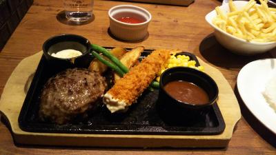 夕食で利用しました。 昨年、伺った時にハンバーグが美味しくてソースも選べるので又、是非、行きたいと思ってました。 ソースはオニオン、ガーリック、デミグラスから選べます。海老フライもカラッと揚がっていておいしかった。フライドポテトの量は多くて驚きましたが、カラッと揚がっていて胃もたれせず、ぺろっといけました。