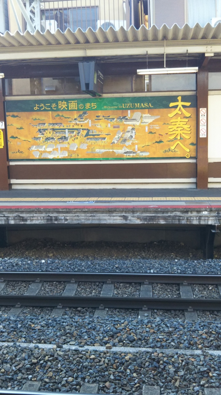 JR京都駅から山陰本線 嵐山線に乗ります。あまりに小さな駅で驚きました。改札もひとつだけ、こじんまりと可愛くて。映画村の最寄駅だから大きな駅を想像してました。