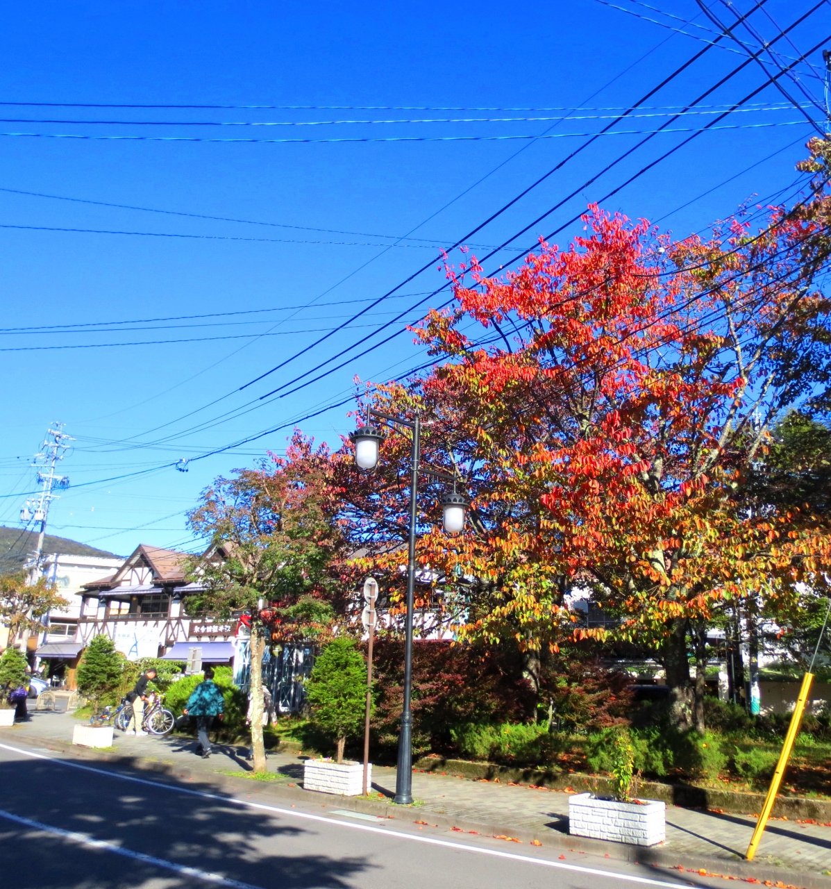 色づきが遅いと言われている2012年の紅葉ですが、急に冷え込んだのか、私が訪れた10/20の軽井沢町の最低気温は3度。紅葉を楽しめる時期を迎えました。白糸の滝に向かう道などは綺麗に紅葉していました。中心部も色づき始めていましたよ。10月の下旬あたりが一番の見頃では。