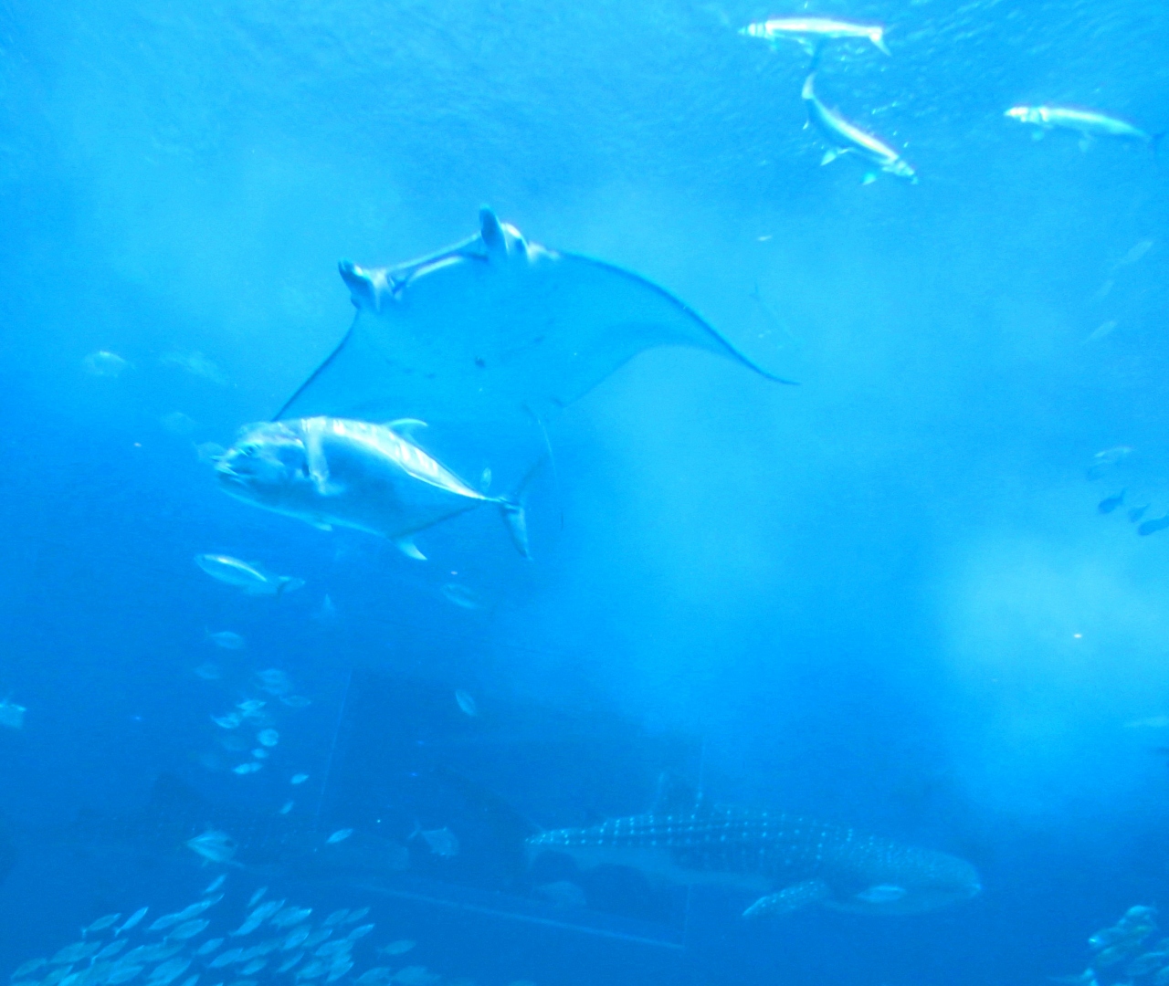平日でもここはやはり混みあいます。私が行った時期は4月最初の週末という学校も始業式前なので修学旅行時期ではなかったので団体客は少なくてまだよかったです。それでも沢山ある駐車場は満車でした。那覇~許田IC方面から行くと、手前から無料駐車場が続き、そこが満車でなければ誘導の人も手招きしますが、水族館が目的ならあえて通り過ぎて、奥というか北側のP7番という大きな立体駐車場に停めましょう。ここが実は一番近くて便利で、車もたくさん停められます。やはり巨大水槽には魅せられました。