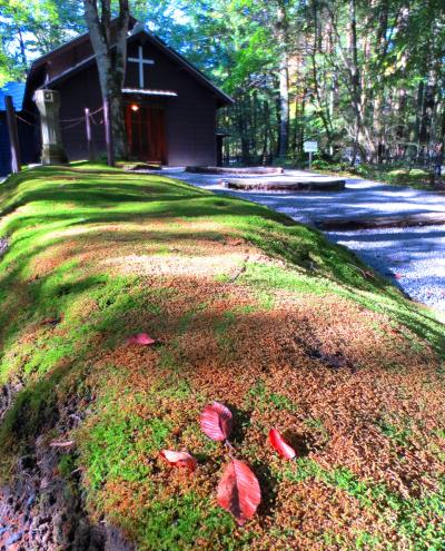 賑やかな旧軽銀座を抜けると、そこは緑豊かで静かな礼拝堂。