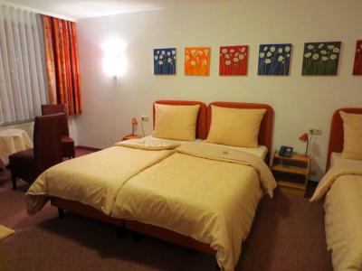 城壁内ということで、マルクト広場にも近く、観光やショッピングにもとても便利な立地です。シティホテルなみに朝食の種類は豊富ではないけれど、一つひとつの味はおいしいですし、いただいているレストランそのものの雰囲気が、またいいですよ。