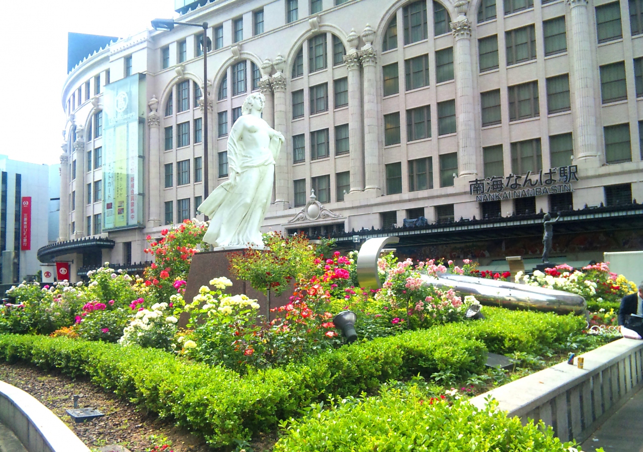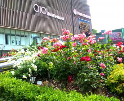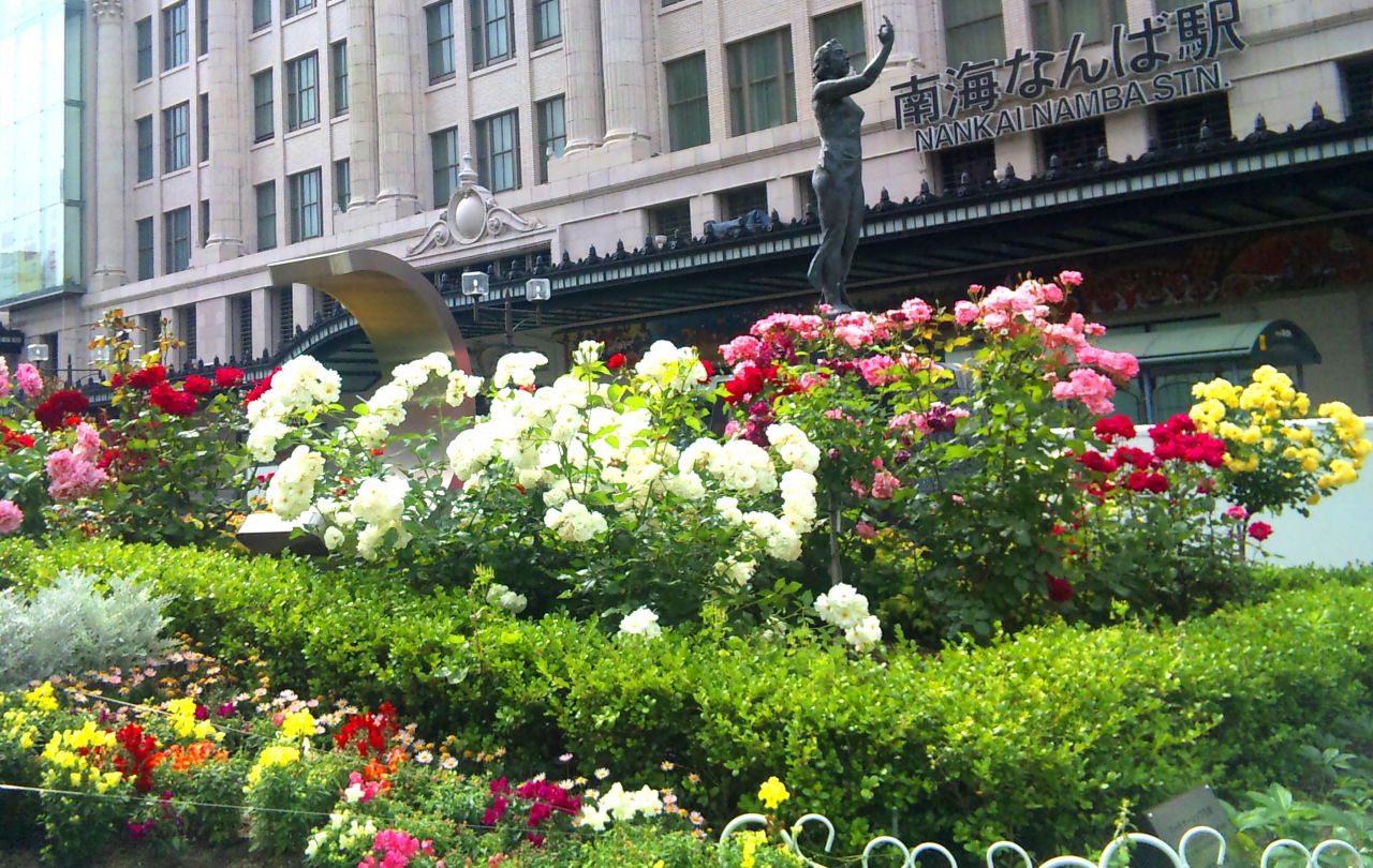 上司のお供の大阪出張だったので観光は一切できなかったのですが、南海なんば駅ビルの前という、人々がとても慌ただしく行きかう場所に、綺麗に咲き乱れる薔薇の園?を発見。