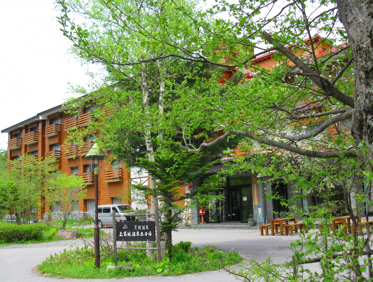 また、そのすぐ隣には白い建物の上高地清水屋ホテル。
