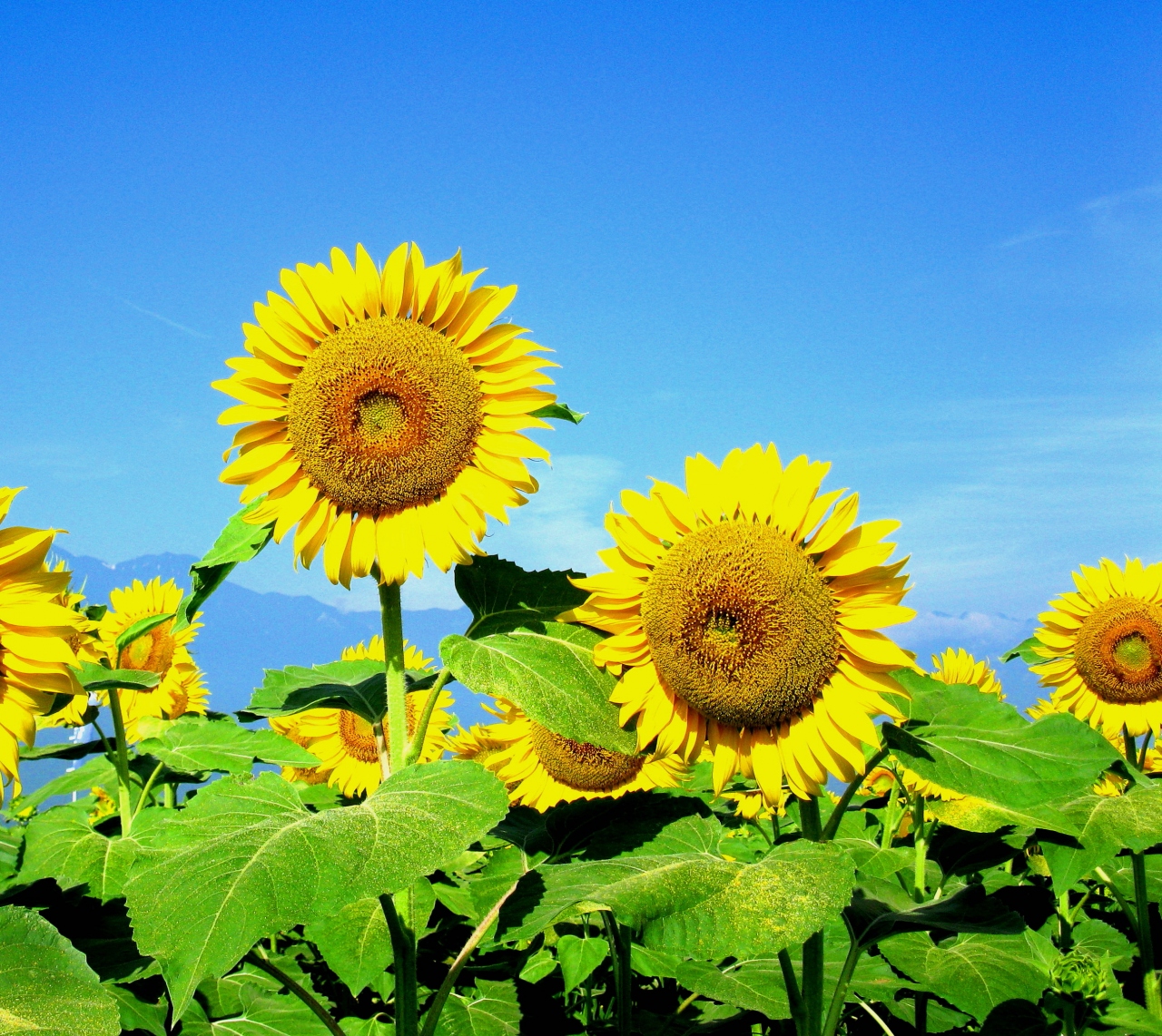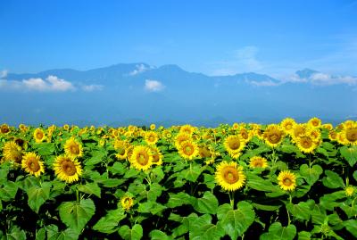 - 南アルプスの山々を背景にひまわり達が一層映えています