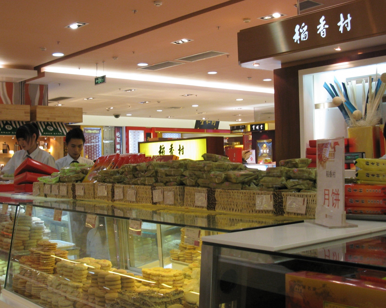 北京のデパート街:王府井で、北京の伝統的なデパート「北京市百貨大楼」の地下は、お菓子屋さんがいっぱい!月餅が有名な「稲香村」さんももちろん出店していますが、他にも色とりどりで、買わずに見ているだけでも楽しめます。