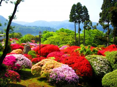 芦ノ湖と富士山の青、そして新緑の5月下旬に、彩りを加えてくれるのが、小田急・山のホテル庭園の3000株のツツジたち。