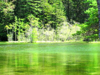 節電を気にしながらの今年の夏。冷房いらずの上高地明神池は、体感温度だけでなく、視覚でも涼を楽しむことができると思います。