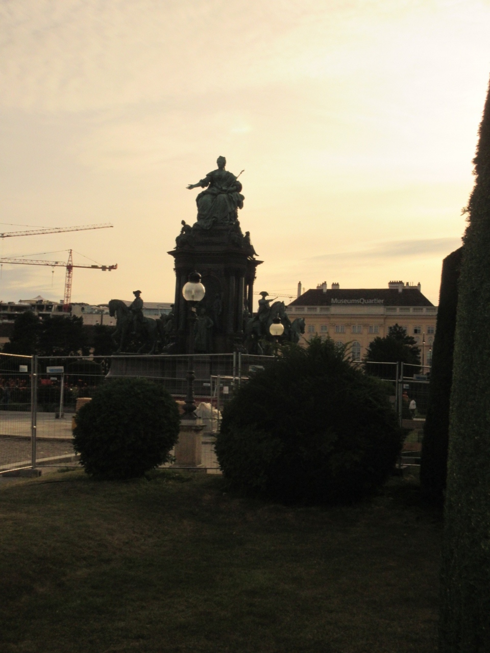 ウィーン滞在の際、地下鉄を降りて美術史美術館と自然史博物館に挟まれたこちらの広場に入りました。先の二つの博物館が双子のように似た建物なので、この広場も左右対称ののつくりになっていました。残念ながら私が訪問した時にあ広場のあちらこちらが工事中で、写真に映える景観にはなりませんでしたが。中心にはマリアテレジアの像があり、この広場のシンボルとなっていました。