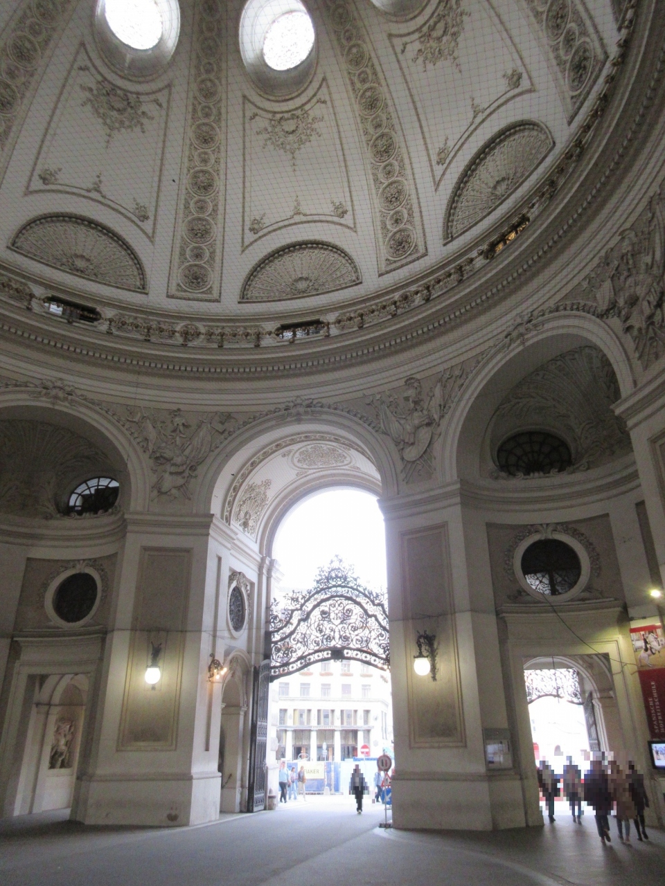 リンク沿いを散策し、双子のような【美術史博物館】や【自然史博物館】が建つ【マリアテレジア広場】から王宮方面にアクセスする際に、こちらの【ブルク門】を通り抜けました。5つの大きなアーチがあり、自動車も通り抜けていました。丁度私が近くにいった際、王宮方面から一台のクラシックカーの雰囲気を持たせた観光用カートがゆっくりと走ってきました。近代的なビルなどこの界隈では見えないので、あたかもハプスブルク帝国末期の20世紀初めのウィーンにタイムスリップしたような雰囲気でした。