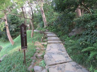 小石川後楽園の大泉水の南側に、綺麗な石を組み合わせて石田畳の道が丘に向かって伸びていました。中国風とのことで、形状の異なる石を組み合わせているとか。いずれにしても実際に歩いて見ると、確かに凹凸が少なくて歩きやすく感じました。