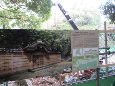 水戸徳川家の庭園であった頃、内庭に入るために作られた門が唐門でした。私が訪れた時には、復元工事の真っ最中で、完成予想図が仮囲いに描かれてました。豪壮な雰囲気の唐破風を配した立派な門が出来上がりそうで、今からとても楽しみに感じられました。蓮の浮かぶ内庭と併せて、主要なスポットになることでしょう。