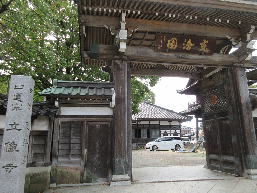 寺町寺院群の構成要素の一つで、寺町通に面した日蓮宗のお寺です。この日は道路工事をしていた関係で、近づきにくく、安全確認をしながら漸くたどり着きました。門構えがとても立派で、境内も広くて本堂も伝統的な様式で見ごたえがありました。