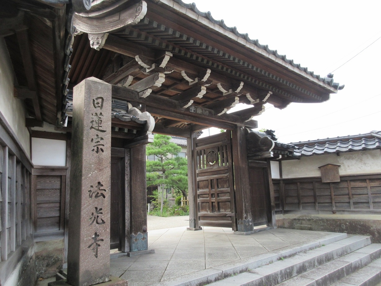 寺町寺院群を構成するお寺の一つが【妙法寺】です。日蓮宗系のお寺のようで、シンプルな造りに好感が持てました。境内は広いのですが、本堂は意外と小ぶりで、奇をてらうことの無い質実剛健な雰囲気がしました。巴御紋の意匠が施された山門も印象的でした。