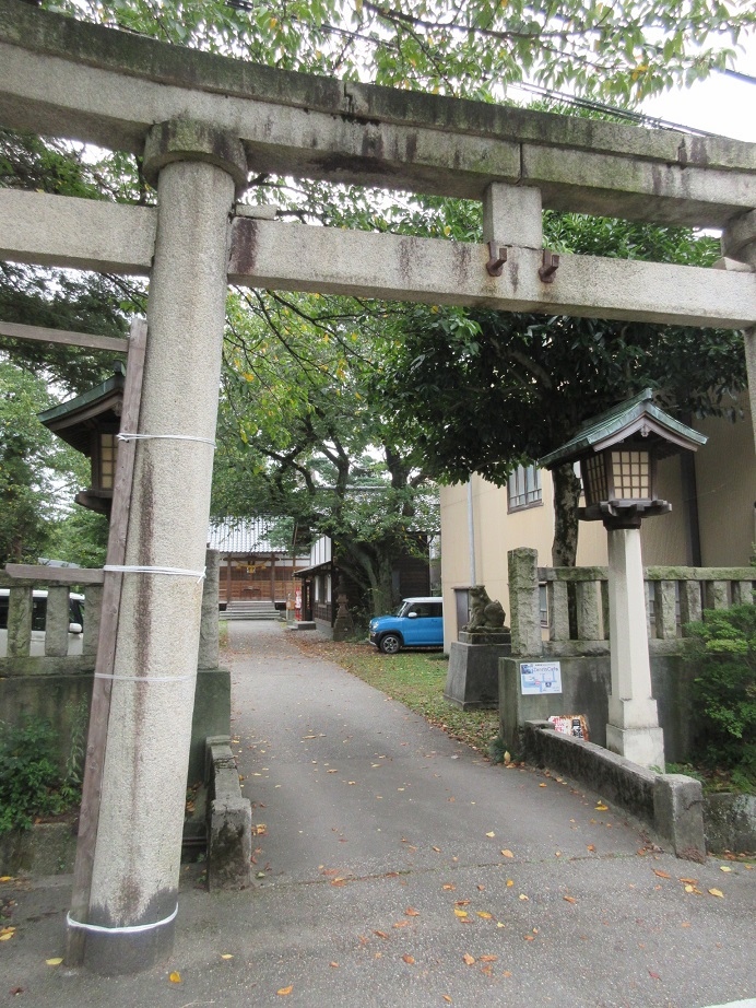 犀川を渡った寺町寺院群の端にありますが、こちらは御寺ではなくれっきとした神社です。信長を祀る珍しい神社ですが、「菅原」の文字もあるので、「菅原道真」も同じように祀っているのかと推察されました。境内に入ると、本殿は意外と新しくて拍子抜けしましたが、鳥居や古木の建つ境内は見ごたえがありました。