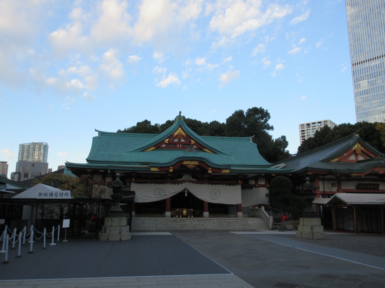 溜池山王から赤坂周辺を散策した際、こちらの【日枝神社】に立ち寄りました。溜池山王駅からほど近い場所にあり、山王パークタワーを過ぎると右手に石段と鳥居が見えてきました。通常の鳥居と違って合掌のような形状の破風を乗せた鳥居は、他で見かけることがないので、非常に特徴的でした。また、付近のホテルに滞在している方なのか、外国からと思しき方も何組が参拝(見学)していて印象に残りました。鎌倉時代にまで遡る歴史ある神社ということで、境内にはそれにふさわしい凛とした雰囲気が漂っていました。