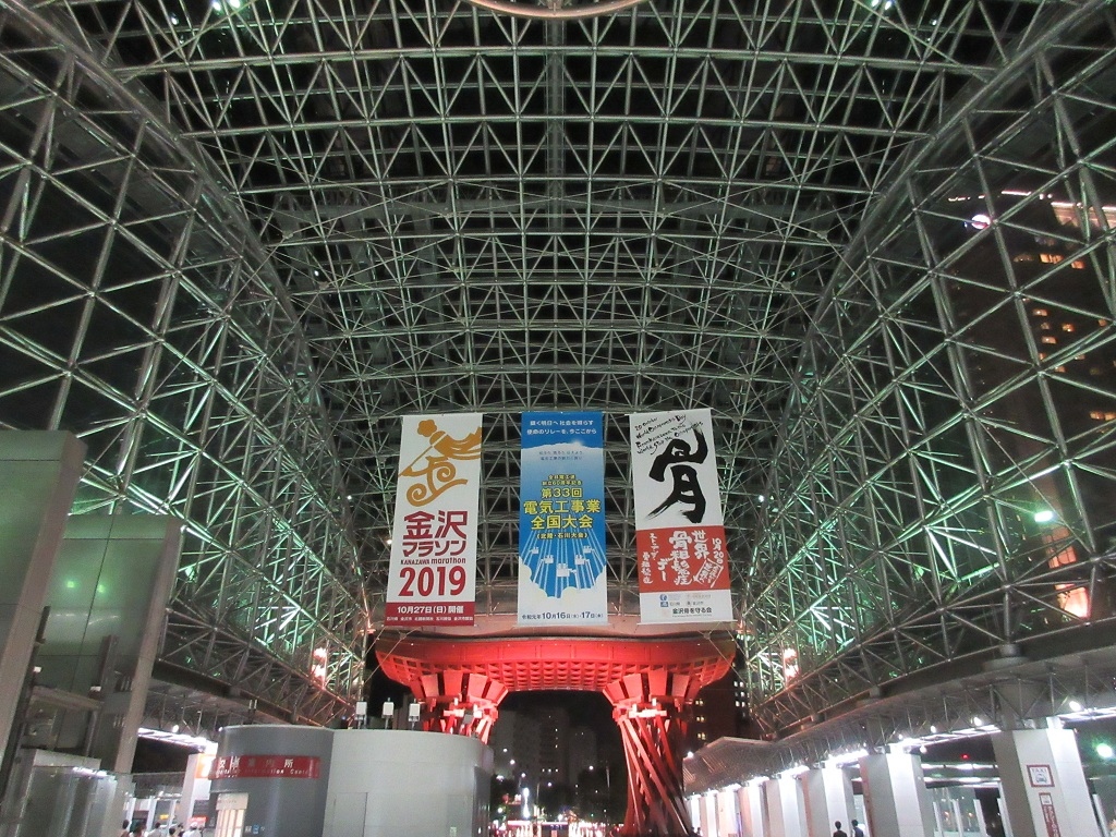 金沢駅を降りて、バスターミナルや地下道入口への空間を覆う巨大なドームが「もてなしドーム」です。私が金沢に滞在した際には雨の降る日もありましたが、このドームがあることで傘をささずにバスに乗ることも出来ましたし、非常にありがたく思いました。そういう意味では、旅行者にさしかけられた傘のような「もてなし」を感じる存在です。