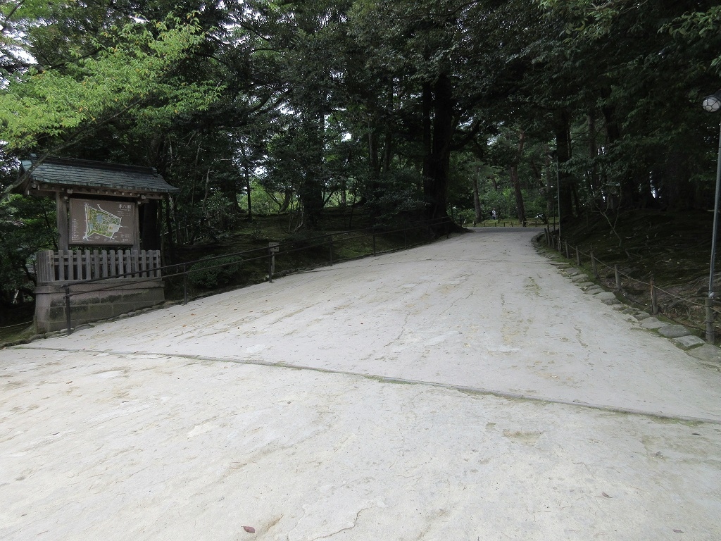 兼六園の西側、瓢池に近い蓮池門口から、霞ヶ池のほうへと続く登り坂で、道幅が広めなので、冬でも歩きやすいだろうと思われました。桂坂口がメインの出入り口になっていますが、こちらの通りは良く整備された林道のような雰囲気が感じられました。行き交う人もほとんどおらず、穴場スポットの一つだと思います。