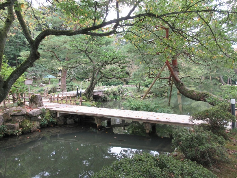 金沢兼六園の中、夕顔亭にほど近い瓢池にかかる小さな木の橋です。すれ違うことも出来ないような幅の狭い橋ですが、それがかえって隠れ家に向かうようなわくわく感を掻き立ててくれました。汐見とは言いますが、海までは遠くて今は見ることは出来ません。