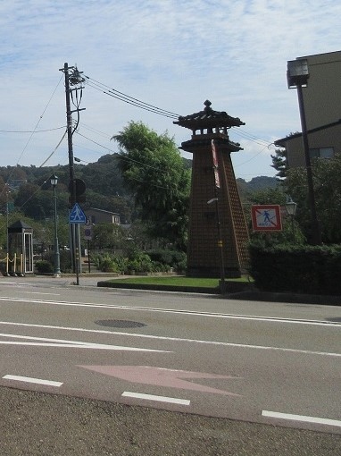 浅野川大橋の袂の緑地帯に、とてもこじんまりとした木製の火の見櫓が建っていました。今ある物は明治時代にあった火の見やぐらを最近になって1/3のサイズで再建した物とのことで、確かに新しく感じました。それでも当時の様子を彷彿とさせる趣のある姿で、浅野川の風物詩といった趣がありました。