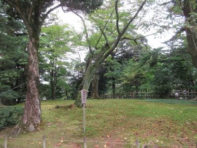 金沢の兼六園に桂坂から入園しました。坂を上がっていくと右手に桜ケ岡との立て札が目に留まりました。訪問したのが10月で桜の季節ではありませんでしたが、何本もの桜の木が植えられていて、きっと4月頃には見事な桜の花で一杯になるのでしょう。万朶の桜が咲き誇る兼六園も、是非とも見てみたいと思いながら木々の間を散策してみました。