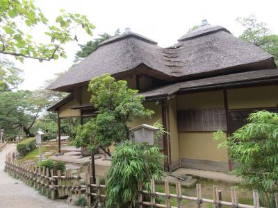 金沢の兼六園の中でも、瓢池のほとりに建つ江戸時代の茶室です。茅葺屋根の建物で、芸術的な価値の高い手水鉢などが庭に置かれていました。また、茶室自体は内部非公開となっているのですが、その軒先からでも瓢池方面を望めば、海石塔や翠滝の景観をも楽しむことが出来て、非常に雅で風流な気分に浸れました。