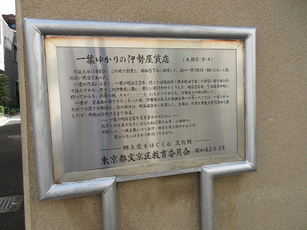 この界隈で三年ほど生活した樋口一葉が、生活が苦しくなる度に通っていたとのこと。
