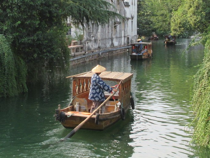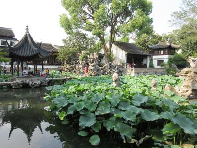 「蘇州夜曲」という昭和15年の歌にも歌われている通り、「水の都」ともいえる蘇州では、山糖街や平江路など船から風景を楽しめるスポットがあります。友人と連れ立ってトライしましたが、200元前後が一艘あたりの料金のようで、大勢で利用する方が良いですね。概ね5,6人のグループだとコストも手ごろかと思いました。船からの風景は石橋の下をくぐり白壁の家屋が突然視界に入って来るのが面白く感じられました。ただ、郊外の周荘など水郷村の船に比べると、古い家屋ばかりではなく近代的な建物もいやでも目に入ってくる蘇州市内は、情緒の面で物足りなさも否めません。