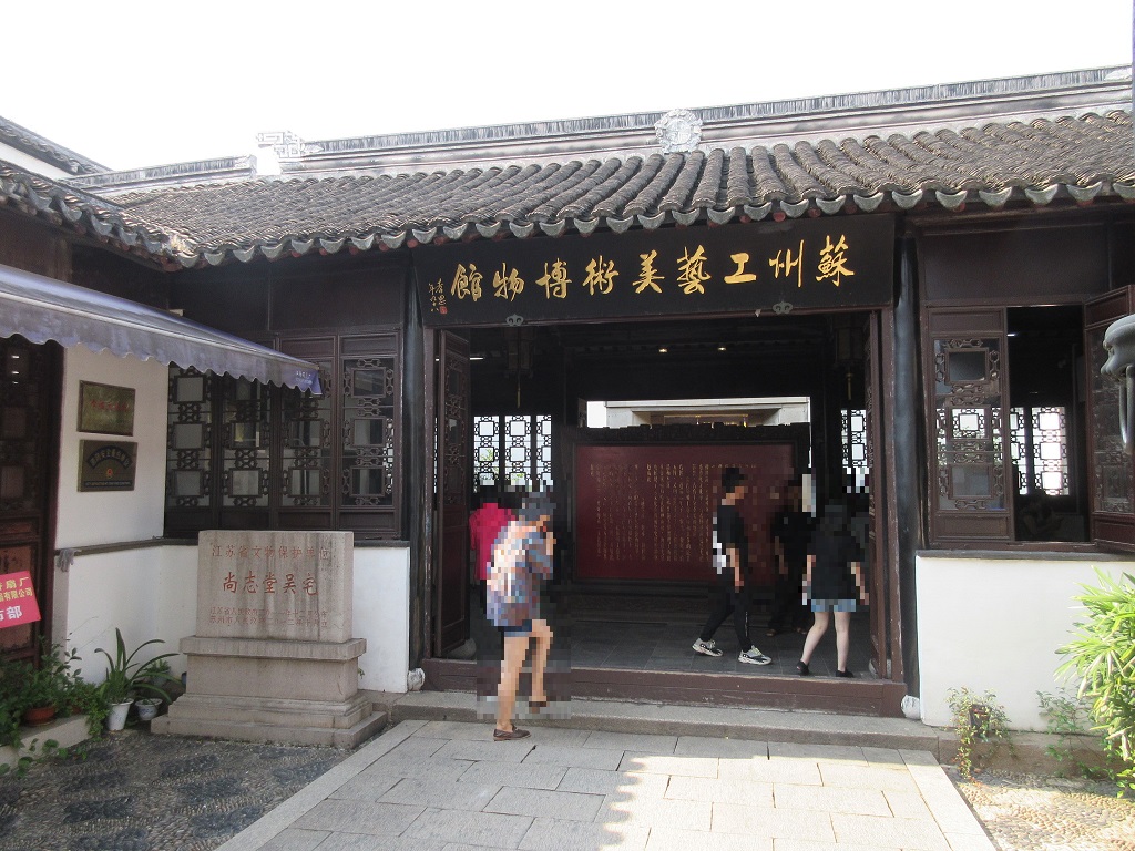 北寺塔から拙成園に向かう途中、道の左側にあり、古いお屋敷を利用した工芸美術品の博物館で、少し時間があったので立ち寄りました。翡翠細工や蘇州らしい刺繍、木彫り細工、漆細工などが展示されていました。訪れる旅行者も少な目で、ゆっくり落ち着いて見学できました。洗練された美術工芸品の数々は、目の保養になりました。