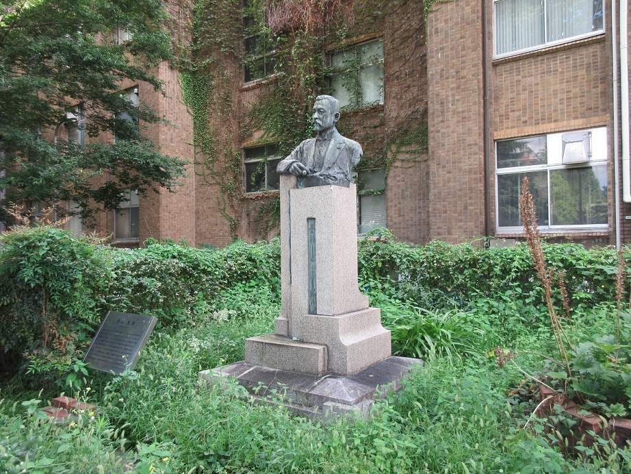東京大学を代表する建築の一つである安田講堂の裏側に、寂しくポツンと置かれた胸像があり近づいてみると「山川健次郎像」とのこと。会津若松の白虎隊のメンバーであったそうで、明治期には物理学者として名を馳せ、東京大学の総長を務めたとのことです。立ち止まって見る人もほとんどいませんが、今は静かに学びやに集う若者らを見守っているような慈悲深い顔が印象的でした。