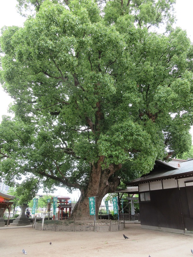 佐嘉神社の東側に隣接した神社がこちらの松原神社です。佐嘉神社ほどではないですが、立派な境内には七つのお社がありましたし、「松原の大楠」のいう巨大な楠が鳥居をくぐると目に飛び込んできました。また、東側の石の鳥居の脇の石橋は歴史を感じさせてくれますし、小さいながらも見所の多い神社だと思いました。