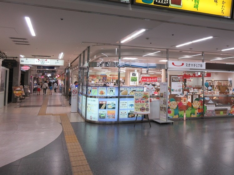 佐賀駅は高架式になっていて、下の空間を巧みに活用した小ぶりのモールが「えきマチ1丁目 」です。改札を出て目の前にあり、レストランやカフェといった飲食店、お土産物やさんや書店がコンパクトにまとまっていて、出張者や旅行者のニーズにも十分対応していました。このモールを抜けると佐賀バスターミナルまで雨に濡れずにアクセスすることが出来ます。
