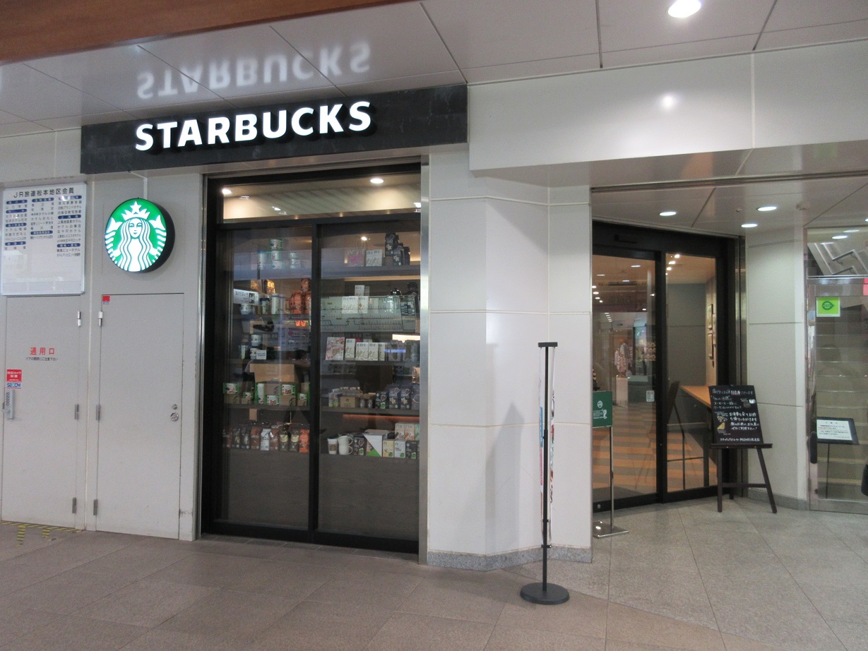 JR松本駅を利用した際、電車の出発時間まで時間があったので、隣接する商業ビルMIDORIに入っているスターバックスコーヒーに立ち寄りました。広い店内にお客さんはまばらで、席が確保できるか心配する必要もなくありがたかったですね。店内ではノートパソコンを広げて打ち合わせしてるビジネスマンもいて、落ち着いて仕事ができる雰囲気でした。