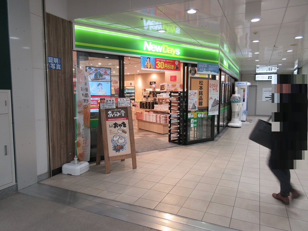 JR松本駅の改札階にあるコンビニエンスストアです。やはり観光名所の多い松本らしく、店内は通常の雑貨や食料品以外に、松本や長野県のお土産物も多数置かれていました。新宿方面への特急列車の出発間際になってくると、更に込み合います。落ち着いて買うなら、隣のMIDORIのエスカレータで上がったフロアーのお土産物やさんの方が良いと思います。