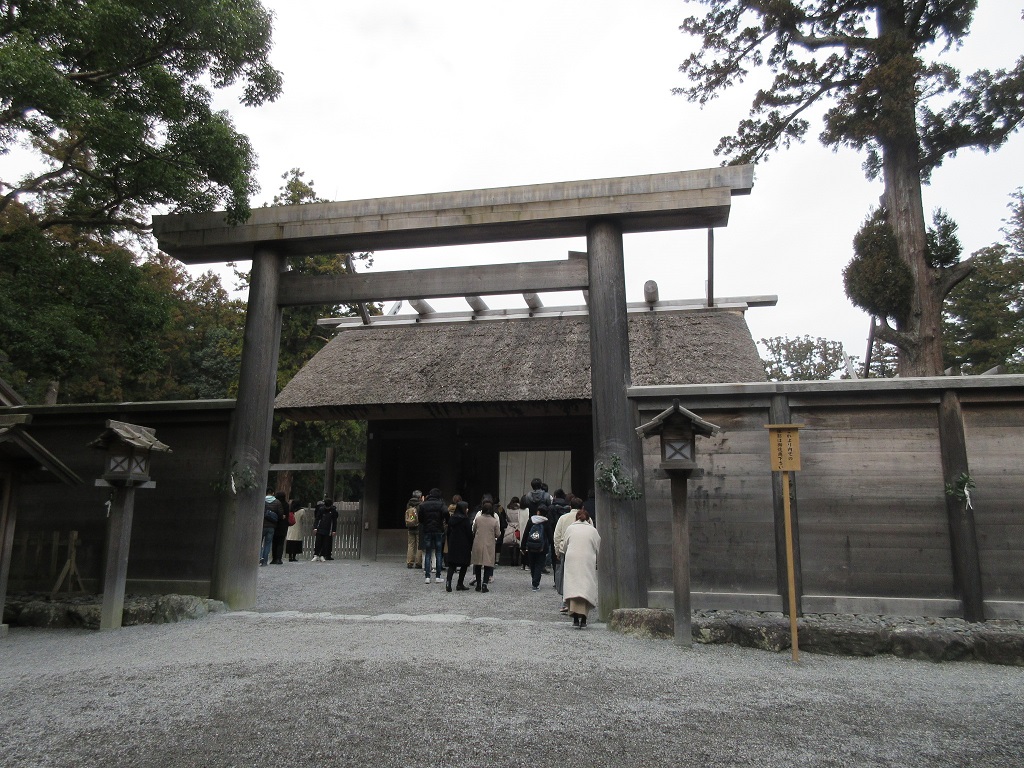 伊勢神宮では内宮のみ見学する方も多いと思いますが、外宮はその神聖で凛とした雰囲気が魅力的でした。内宮より先に参拝することになっています。樹齢数百年という巨木がうっそうと生い茂り、日本人の心の原風景というのはこういう場所なのかと思えてきました。内宮と同様に写真撮影は禁止なので、離れたところで写すことになりました。