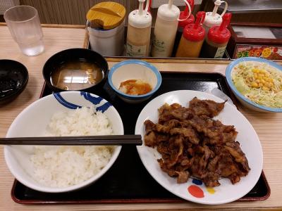 神田駅界隈のホテルに宿泊した際、こちらの松屋を利用する機会がありました。甘い味付けなのですが、サラダと味噌汁のついた焼肉定食など、お得感のあるメニューが多いですね。この日も大盛を頼み、頑張って完食してしまいました。食券を購入してから着席するスタイルです。