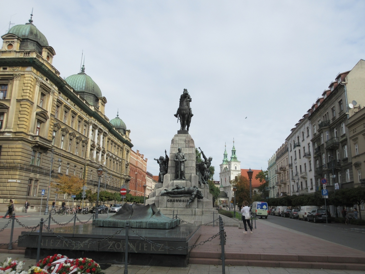 【グルンウォルドの記念碑】とのことで、調べてみるとポーランドの昔の英雄とのこと、この騎馬像の前には更に燃え盛る炎のようなオブジェもあり、広い面積がとられていました。彼へのポーランドの敬愛の念が伝わってくるようでした。- 旅行時期